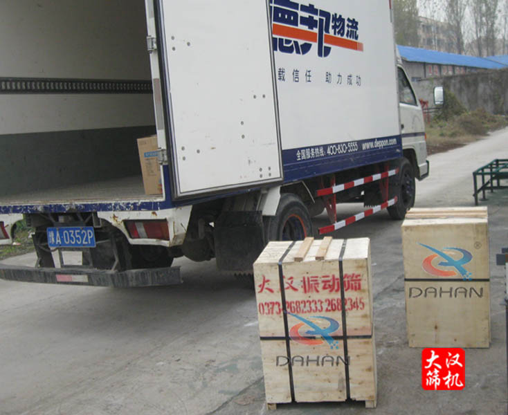 浙江省永康市**砂輪廠胡先生你好,你所采購的大漢牌400型一層振動篩(2臺)已通過德邦物流發(fā)出,預(yù)計3天左右到達,請注意查收,使用前請先拆除運輸支撐架并詳細閱讀振動篩使用說明書,感謝你對大漢公司的信任和支持,祝工作順利,萬事如意。