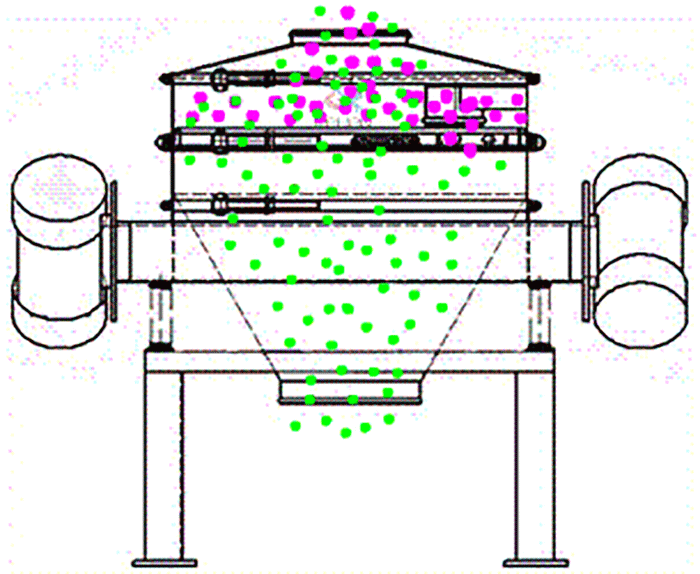 同樣是電機(jī)提供振動(dòng)源,物料從進(jìn)料口進(jìn)入,在振動(dòng)作用下,小顆粒穿過(guò)篩板到達(dá)出料口;篩機(jī)蓋使整個(gè)振動(dòng)篩稱為一個(gè)密封環(huán)境,物料就不會(huì)受到污染或亂飛;彈簧則是在振動(dòng)狀態(tài)下起到減震作用,如果沒(méi)有彈簧,振動(dòng)篩是無(wú)法工作的。