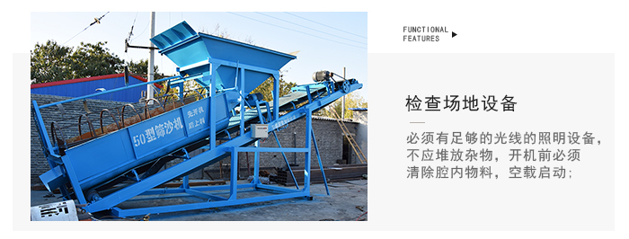 3.篩沙機(jī)運(yùn)轉(zhuǎn)時(shí)不可進(jìn)行修理及清理工作,嚴(yán)禁開機(jī)檢修;